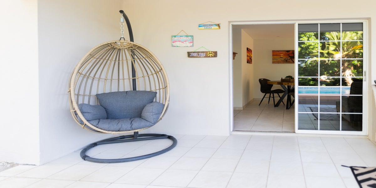 Het grote overdekte terras is de perfecte plek om de dag te beginnen met een heerlijk ontbijt en ’s avonds te genieten van een diner terwijl je de tropische bries voelt. Ontspan in de zithoek, neem plaats aan de eettafel met vier stoelen, of kom volledig tot rust op een van de twee ligstoelen. Vanaf het terras loop je direct naar het verfrissende zwembad, ideaal voor een verkoelende duik op elk moment van de dag.